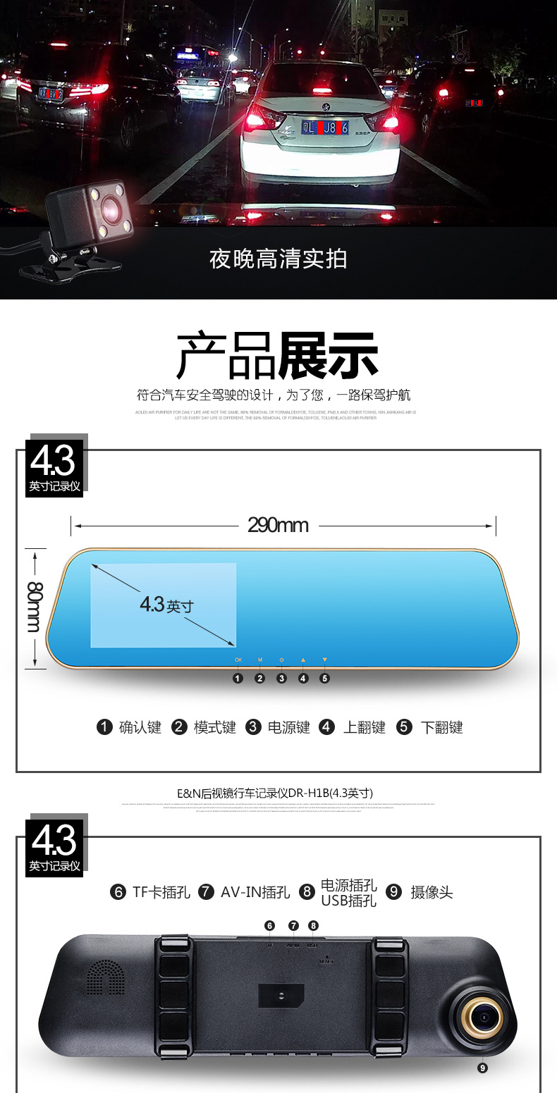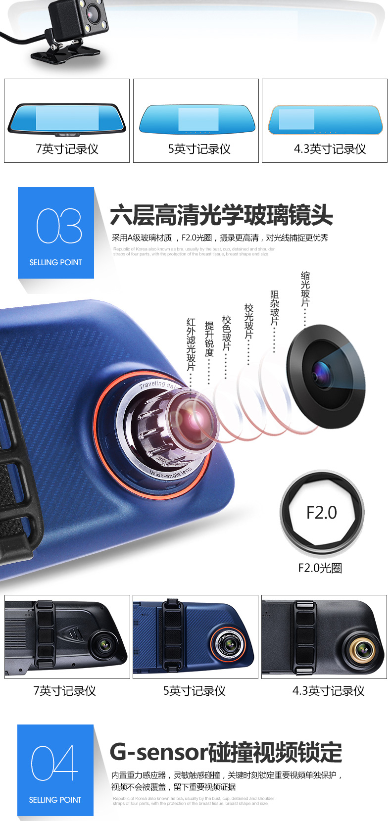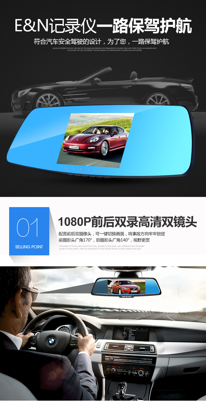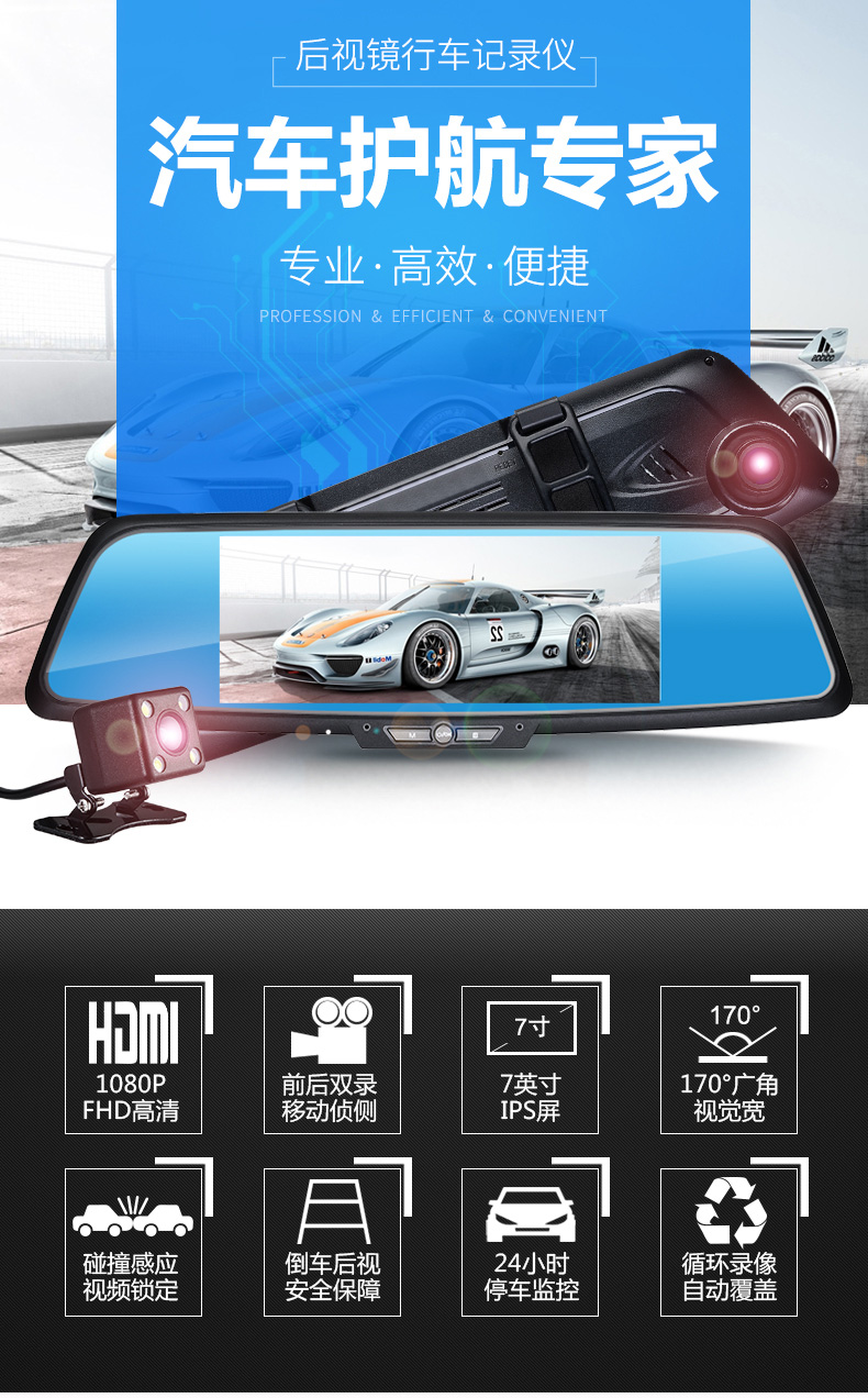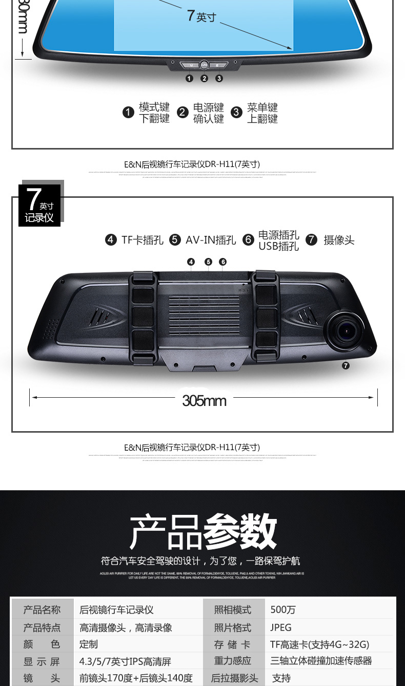 功能: 循環(huán)錄像、碰撞保護(hù)、停車(chē)監(jiān)控、大屏觸控功能、手動(dòng)鎖存、一鍵拍照